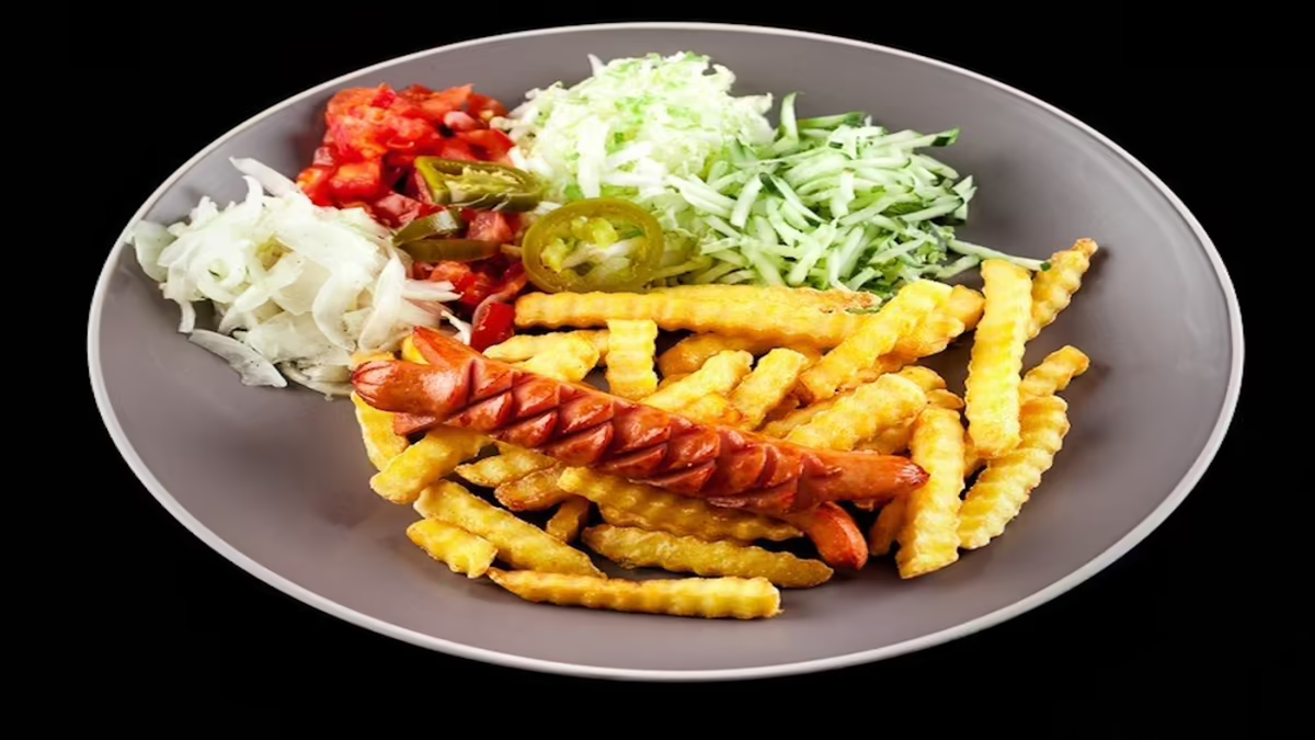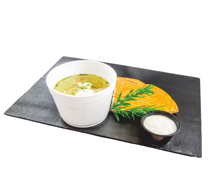 (ICEBERGO SALOTA, AGURKAS, POMIDORAS, ŠVIEŽIA PAPRIKA, SVOGŪNAI, PASIRINKTA MĖSA, PASIRINKTAS PADAŽAS)